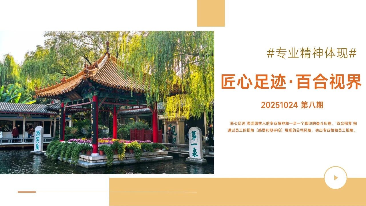 匠心足迹 强调园林人的专业精神和一步一个脚印的奋斗历程。“百合视界“指通过员工的视角(感悟和随手拍)展现的公司风貌。突出专业性和员工视角。